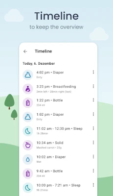 புதிய பெற்றோர்களுக்கு குழந்தை வளர்ப்பு சவாலானது மற்றும் சோர்வாக இருக்கும். உங்கள் குழந்தையின் உணவு, தூக்கம், டயப்பர் மாற்றங்கள் போன்ற அனைத்து அத்தியாவசிய விவரங்களையும் இந்த செயலி கவனித்துக் கொள்கிறது. இதனால் நீங்கள் உங்கள் அன்பான குழந்தையுடன் முக்கியமான நேரங்களை முழுமையாக செலவிடலாம்.