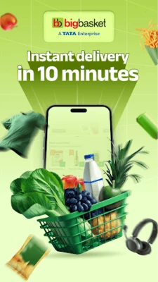 உங்களின் அத்தியாவசியத் தேவைகளை உடனுக்குடன் பூர்த்தி செய்ய `bigbasket now` உங்களுடன். சில நொடிகளிலேயே, 20,000-க்கும் மேற்பட்ட அன்றாட மளிகைப் பொருட்களை, வெறும் 10 நிமிடங்களில் உங்கள் வீட்டு வாசலுக்கே கொண்டு வந்து சேர்ப்பதன் மூலம், நாங்கள் புதியதொரு விரைவான ஷாப்பிங் அனுபவத்தை வழங்குகிறோம். இந்த அதிவேக சேவை தேர்ந்தெடுக்கப்பட்ட நகரங்களில் மட்டுமே தற்போது கிடைக்கிறது. `bigbasket` என்பது இந்தியாவின் முன்னணி ஆன்லைன் மளிகை சேவை தளமாகப் பரிணமித்து, ஒரு கோடிக்கும் அதிகமான மகிழ்ச்சியான வாடிக்கையாளர்களின் நம்பிக்கையைப் பெற்றுள்ளது.