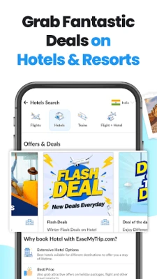 EaseMyTrip - இந்தியாவின் வேகமாக வளரும் பயணச் செயலி. 20 மில்லியனுக்கும் அதிகமான பயனர்களுடன், விமானங்கள், ஹோட்டல்கள், விடுமுறைப் பொதிகள், பேருந்துகள், டாக்சிகள், கப்பல் மற்றும் ரயில் பயணங்களை நிகரற்ற விலைகளில் எளிதாக முன்பதிவு செய்து, உங்கள் அடுத்த பயணத்தை தடையின்றி திட்டமிட உதவுகிறது.