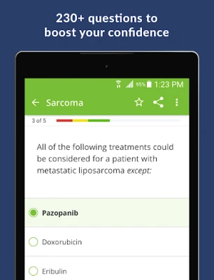 ஒருமுறை மட்டும் செய்யப்படும் செயலிவழி வாங்குதல் மூலம் பிரீமியம் பதிப்பிற்கு மேம்படுத்தி, உங்கள் பயிற்சிக்கு அதிகபட்ச மதிப்பைச் சேர்க்கவும். இந்தப் பிரீமியம் அணுகல், உங்களுக்கு வாழ்நாள் முழுவதும் நிரந்தர உரிமையைத் தருகிறது. இதில், விரிவான விளக்கங்களுடன் கூடிய 230-க்கும் மேற்பட்ட துல்லியமான பயிற்சி வினாக்கள், 'Oncology Board Review, Second Edition: Blueprint Study Guide and Q&A' என்ற தலைப்பிலான மின்நூல் ஆகியவை அடங்கும். மேலும், உங்கள் பலமான மற்றும் பலவீனமான பகுதிகளைத் துல்லியமாகக் காட்டும் விரிவான முடிவுகள் கண்காணிப்பு மூலம் உங்கள் கற்றலை மேம்படுத்திக்கொள்ளலாம்.