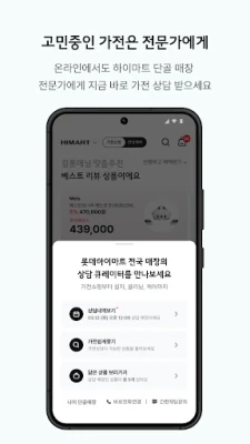 ஹ이마트 வழங்கும் 'ஹார்ட் லைவ்' நேரலை ஒளிபரப்புகளின் மூலம், புதிய கதைகளையும், அற்புதமான தயாரிப்புகளையும் நிகழ்நேரத்தில் கண்டுகளியுங்கள். வேகமான மற்றும் வசதியான 'ஸ்மார்ட் பிக்' சேவை மூலம், நீங்கள் ஆன்லைனில் ஆர்டர் செய்து, நாடு முழுவதும் உள்ள ஹ이마트 கடைகளிலும், செவன்-லெவன் வசதிக் கடைகளிலும் உங்கள் பொருட்களைப் பெற்றுக்கொள்ளலாம். அவசரத் தேவைகளுக்கு, '2 மணிநேர விரைவு டெலிவரி' சேவை மூலம் உங்கள் ஆர்டர்கள் 2 மணி நேரத்திற்குள் பாதுகாப்பாக உங்களை வந்தடையும். மேலும், உங்களுக்கு சிறந்த முடிவுகளை எடுக்க உதவும் வகையில், நிபுணர்களுடன் நேரடி ஆலோசனை சேவையையும் ஹ이마트 வழங்குகிறது. உங்கள் வீட்டு மற்றும் வாழ்க்கை முறைத் தேவைகளுக்கான முழுமையான தீர்வாக 롯데 하이마트 எப்போதும் உங்களுடன்!