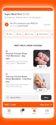 Super Meat Mart செயலி, உங்கள் இறைச்சி ஷாப்பிங்கை எளிதாக்குகிறது. புதிய கோழி, ஆடு, மீன், கடல் உணவுகள் மற்றும் பலவற்றை உங்கள் உள்ளங்கையில் இருந்தபடியே ஆன்லைனில் தேர்வு செய்யலாம். குறிப்பிட்ட வெப்பநிலையில் பாதுகாக்கப்பட்ட, சுகாதாரமான பெட்டிகளில், மிக விரைவாக உங்கள் வீட்டு வாசலுக்கே டெலிவரி செய்கிறோம். எந்தவொரு ரெசிபிக்கும் ஏற்ற பலவிதமான வெட்டுக்கள் மற்றும் தனிப்பயனாக்கப்பட்ட வகைகளை ஆராயலாம். பிரத்யேக செயலி சலுகைகள், தள்ளுபடிகள் மற்றும் காம்போ டீல்கள் மூலம் சேமிப்பை அனுபவியுங்கள். உங்களுக்கு பிடித்த முகவரிகளைச் சேமித்து, விரைவான ஆர்டர்களை மேற்கொள்ளலாம்.