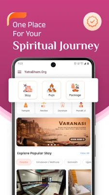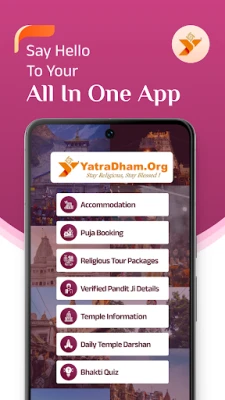 ஆன்மீகப் பயணங்களை எளிதாக்கி, மறக்க முடியாத அனுபவங்களாக மாற்ற, **YatraDham App** உங்களுடன் கைகோர்க்கிறது. லட்சக்கணக்கான பயணிகளின் நம்பிக்கையைப் பெற்று, 20 லட்சத்திற்கும் மேற்பட்டோர் பயன்படுத்தும் எங்கள் செயலி, இந்தியாவின் முன்னணி ஆன்மீகத் தலங்களுக்கான தங்குமிட வசதி, பூஜை ஏற்பாடுகள் மற்றும் முழுமையான பயணத் தொகுப்புகளை வழங்குகிறது. கோவில்கள் குறித்த விரிவான தகவல்கள், நேரங்கள் மற்றும் அன்றாட தரிசன விபரங்கள் அனைத்தும் உங்கள் கைபேசியில் விரல் நுனியில் கிடைப்பதால், உங்கள் யாத்திரை திட்டமிடுதல் இனி மிகவும் எளிது. பயன்பாட்டாளர்களின் கருத்துக்களின் அடிப்படையில் மேம்படுத்தப்பட்ட பயனர் இடைமுகம் மற்றும் தொடர்ச்சியான பிழை திருத்தங்கள் மூலம், உங்கள் அனுபவத்தை மெருகேற்ற நாங்கள் உறுதிபூண்டுள்ளோம்.